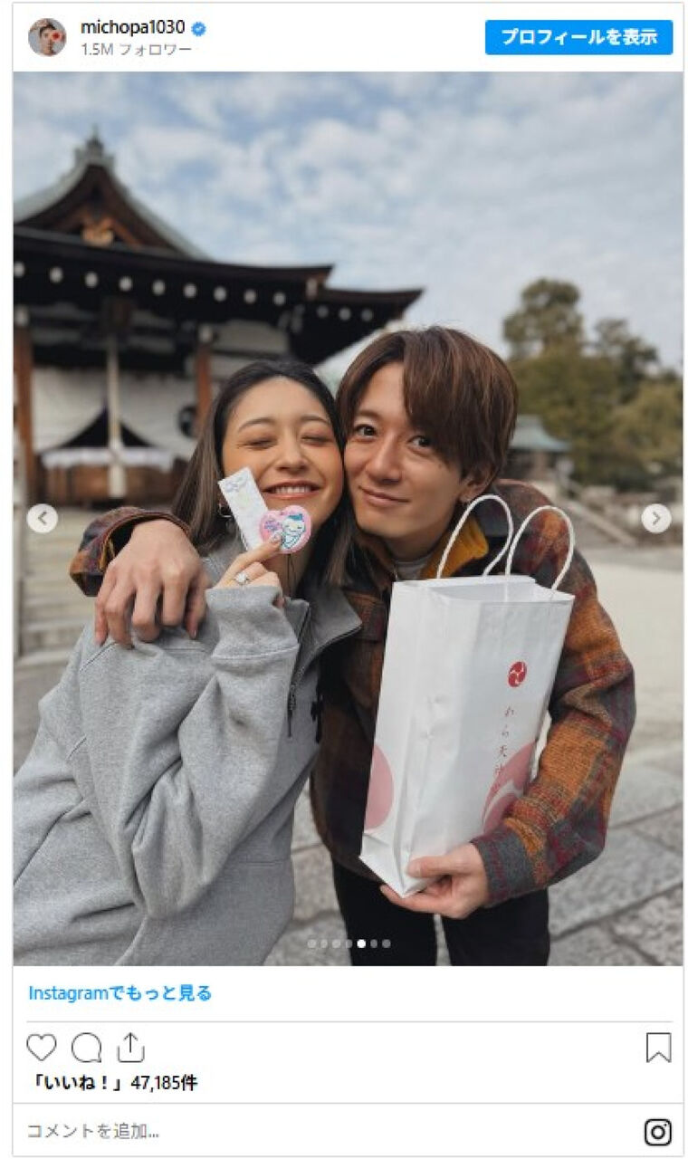 みちょぱ、第1子妊娠を発表「毎日が楽しみで待ち遠しいです」 夫・大倉士門と安産祈願に訪れた仲良しショットも公開
